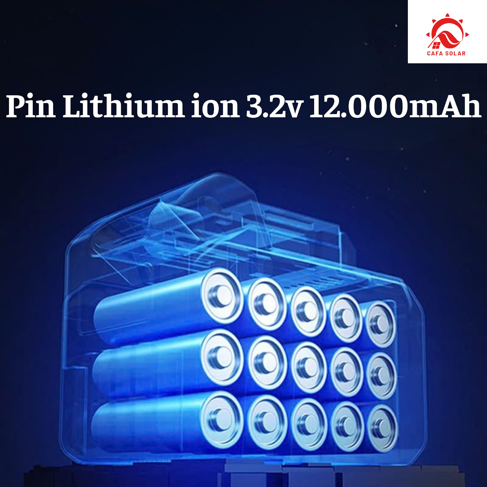 Trang bị pin lưu điện dung lượng cao (12.000 mAh), giúp đèn sáng liên tục 8–12 tiếng.