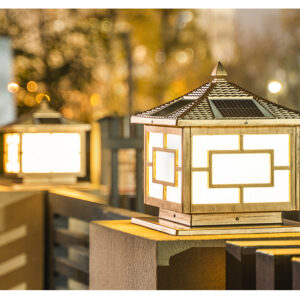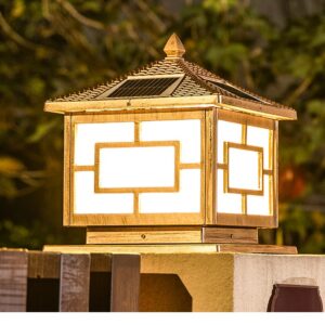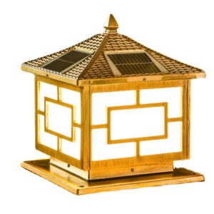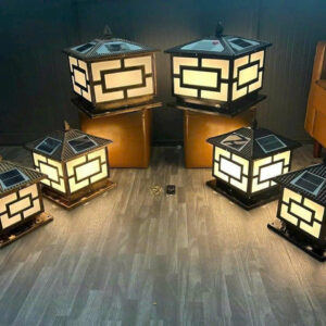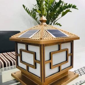 Đèn Trụ Cổng Hoạ Tiết Vuông Size 20CM, Năng Lượng Mặt Trời